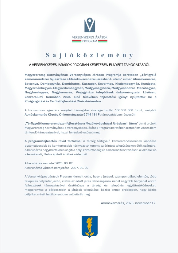 A személyes kontaktust nélkülözve az alábbi e-mail címen is indíthat ügyintézést. bejelentes@almaskamaras.hu
